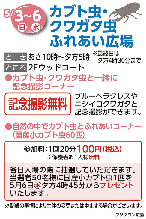 当日フジグラン広島(全館)にてお買い上げいただいた1000円以上のレシートをご提示で