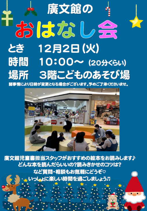 児童書担当スタッフが季節にぴったりの楽しい絵本をお読みします。