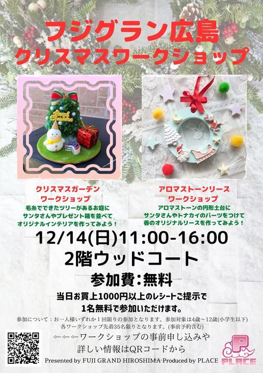 12/14(日)にフジグラン広島2階特設会場にて、毎回大人気の親子で参加できるワークショップイベントを開催いたします!