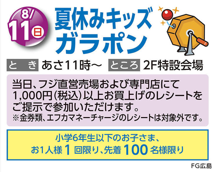 当日、フジ直営売場および専門店にて1,000円(税込)以上お買上げのレシートをご提示で参加いただけます。