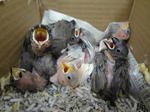 生後約3週間の文鳥のヒナ。 白、桜、シルバーが入荷してます。 1日3回専用の給餌器(育て親)でさし餌を与えています。 さ...