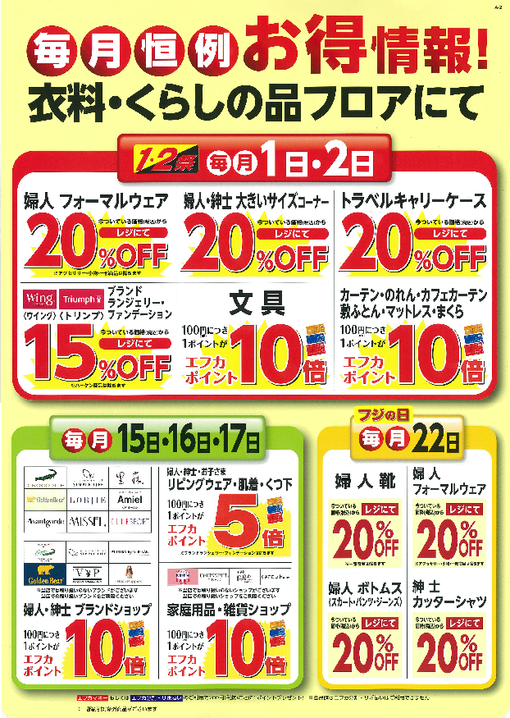 衣料・くらしの品フロアーよりの毎月恒例お買得情報♪
