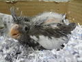 生後約3週間、オカメインコのヒナが仲間入りしました! カラーはホワイトフェースノーマルです。 オカメほっぺのない柄になります。 目が大きめで白黒のきれいな子です。 まだ小さいので溶かしたパウダーフード...