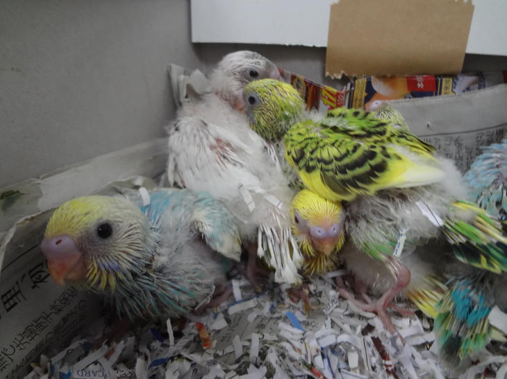 生後約3週間、セキセイインコのヒナが入荷しました。
