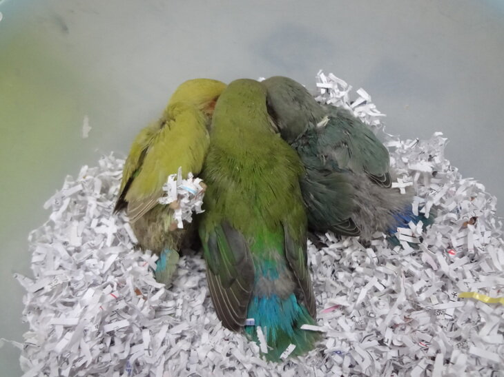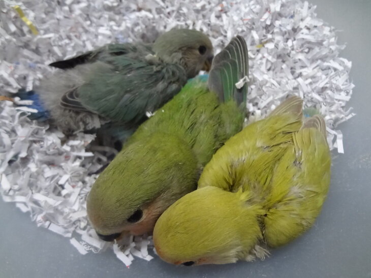 生後約3週間、小桜インコのヒナが入荷しました。